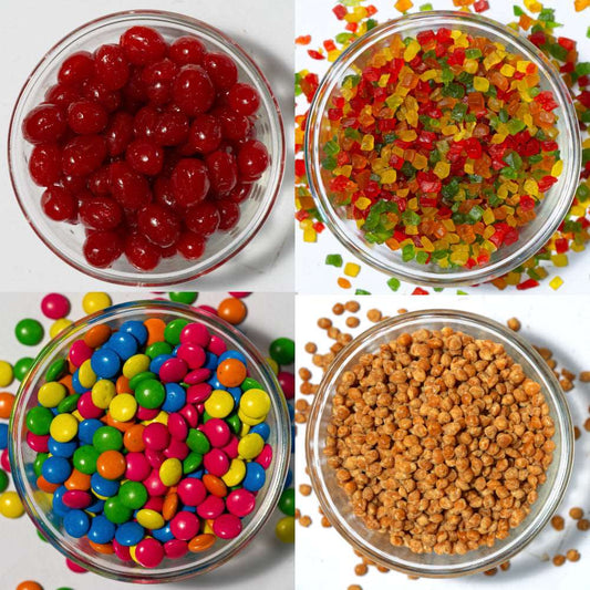Cake Decoration Combo of Cherry, Tutti Frutti, Choco Beans, Butterscotch
