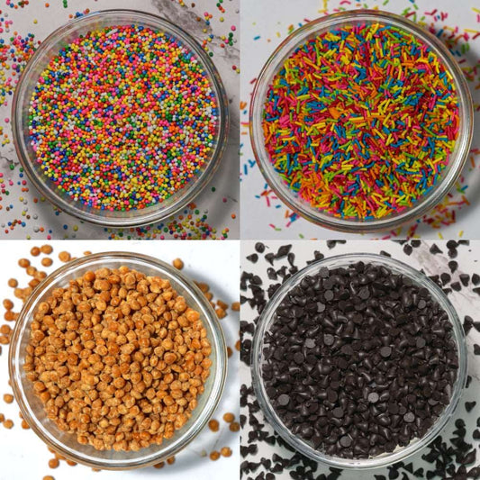 Ice Cream Combo of Rainbow Sugar Balls, Rainbow Vermicelli, Butterscotch, Dark Choco Chips