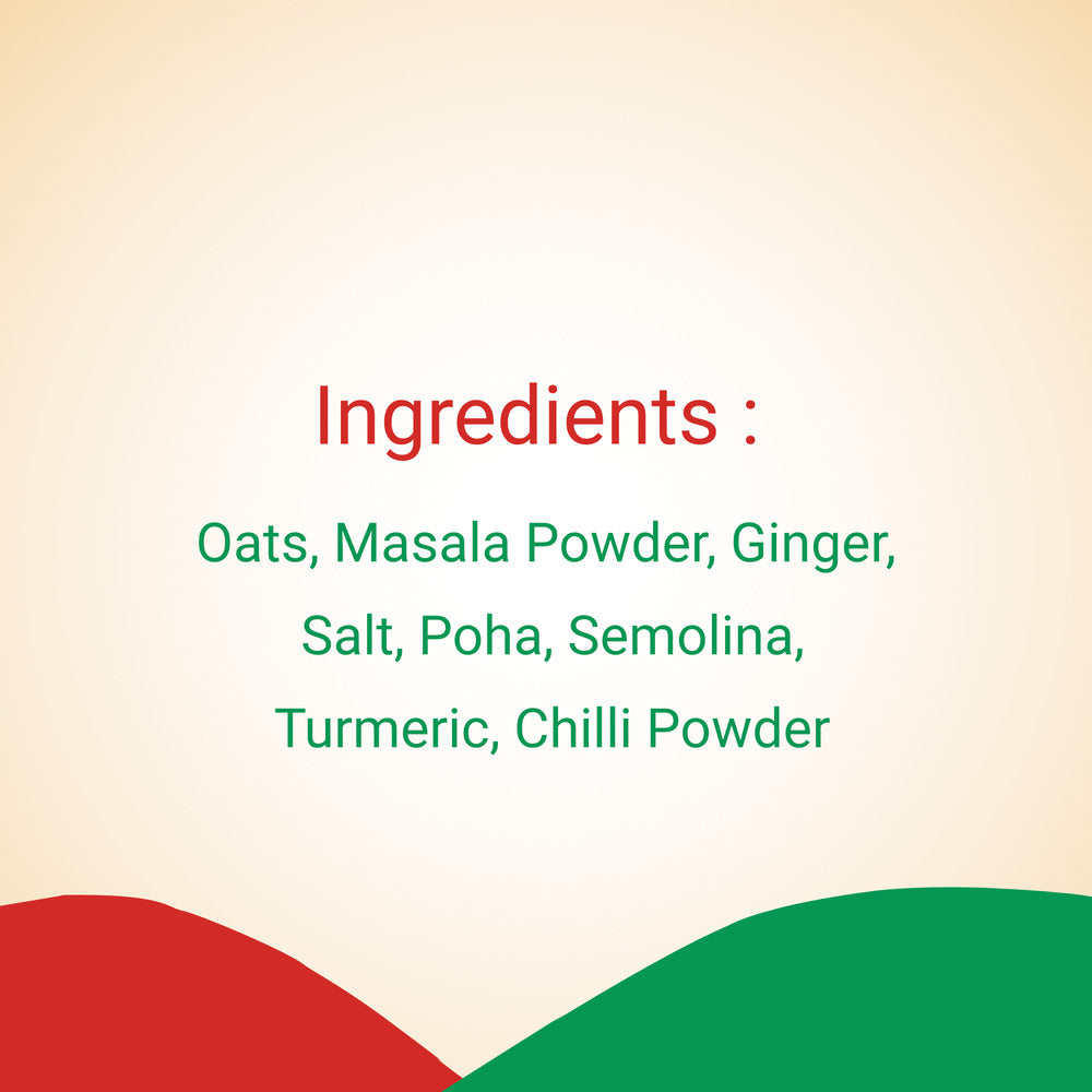 Ingredients : Oats, Masala Powder,Ginger, Salt, Poha,Semolina, Turmeric, Chilli