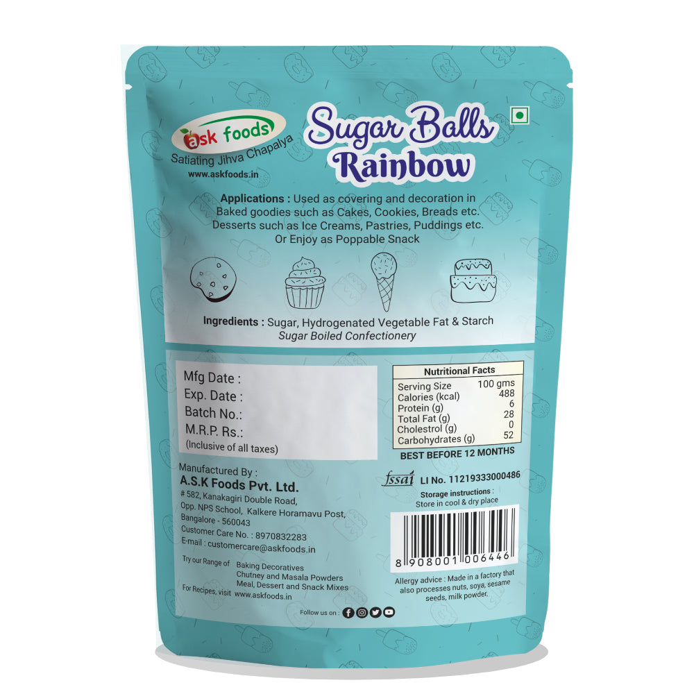 As a topping : Sprinkle Rainbow Sugar Balls as a decorative colorful topping on cupcakes, ice creams, doughnuts and other desserts.