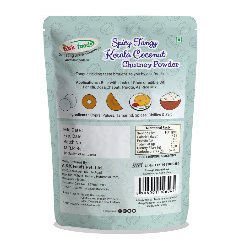 - The chutney powder from the house of ASK Foods is made in small batches in the most hygienic and traditional way to preserve the flavor and taste.