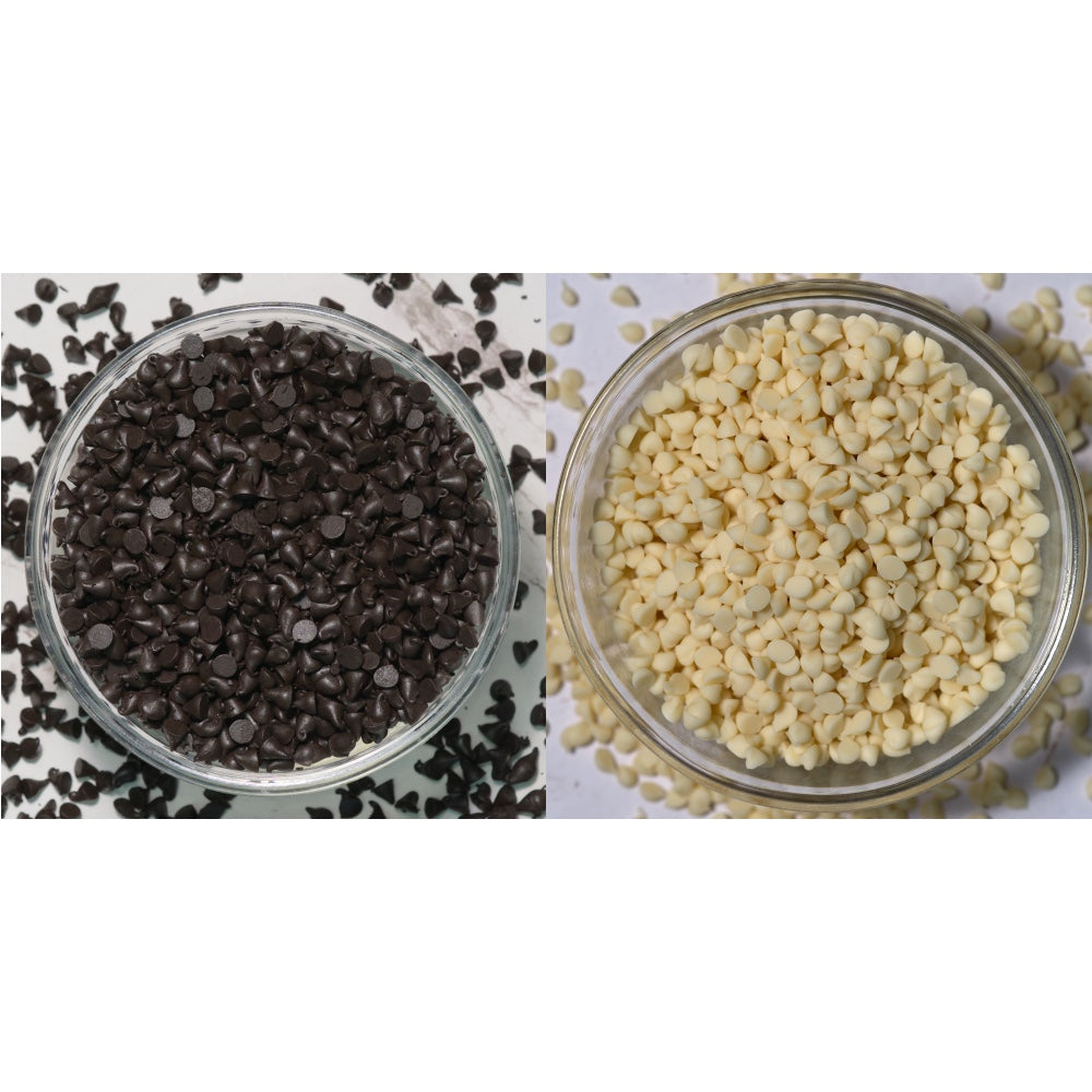 Both white and dark choco or chocolate chips can be used interchangeably in many recipes, depending on your flavor preferences and desired taste. You can also experiment with combining them to create a marbled effect or a balance of sweetness and bitterness in your baked goods. Whether you choose white, dark, or a combination of both, these chocolate chips will add a delectable touch to your culinary creations. Enjoy the rich flavors and textures they bring to your favorite desserts!